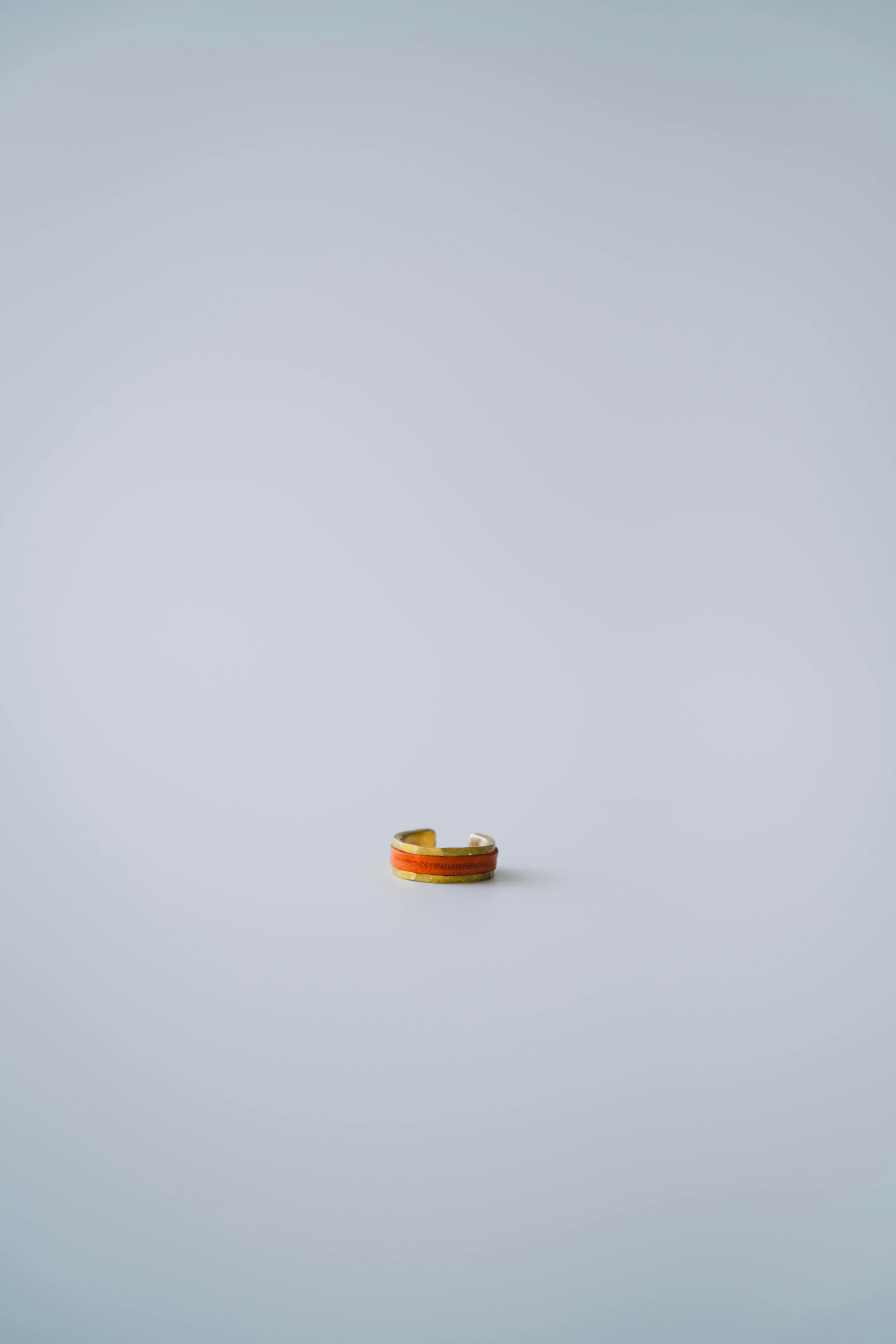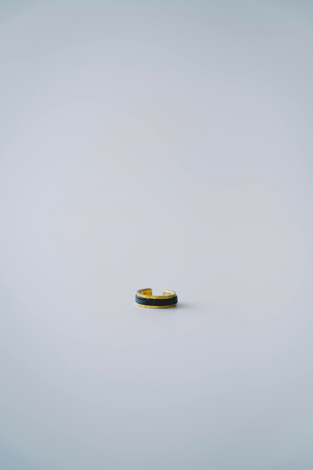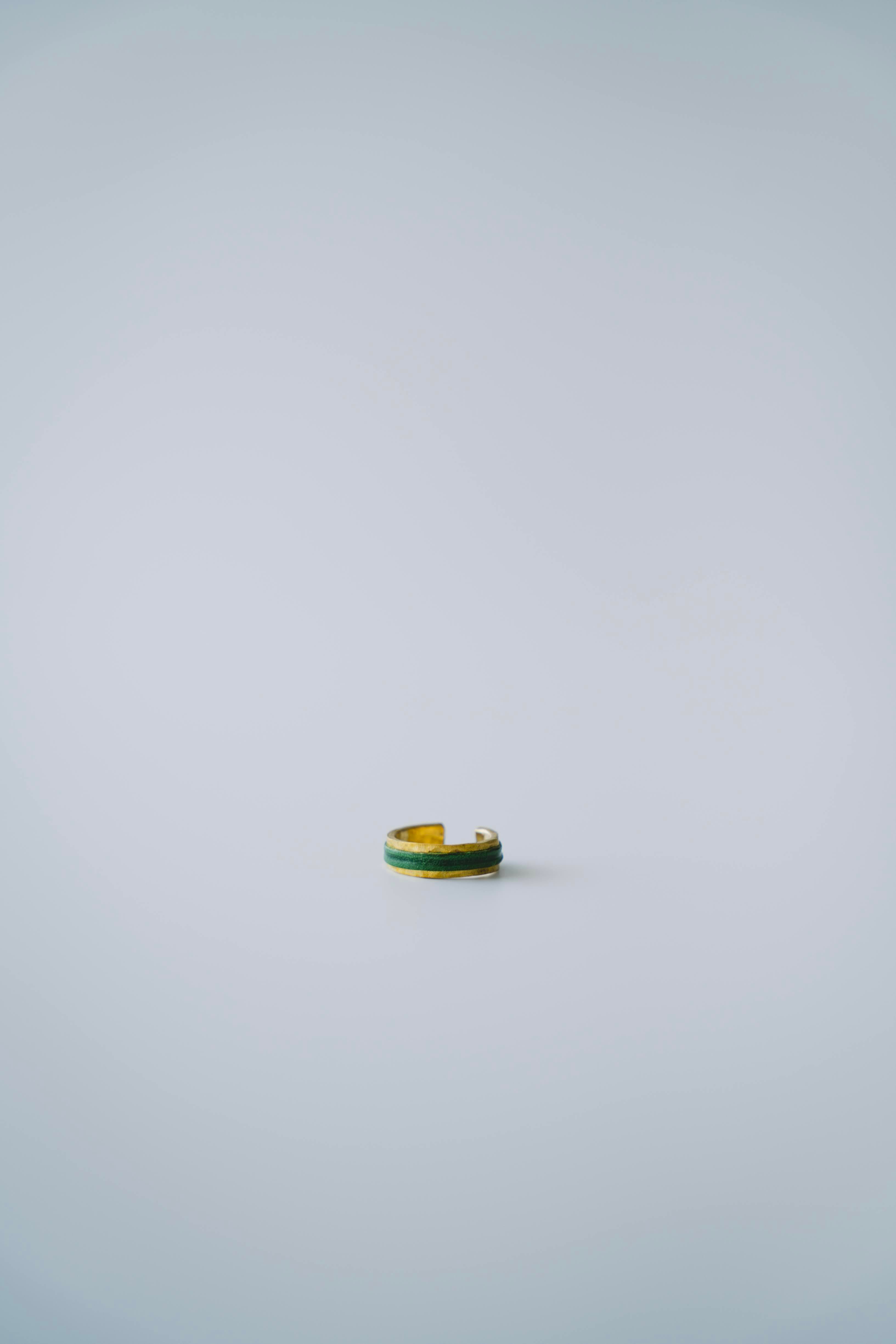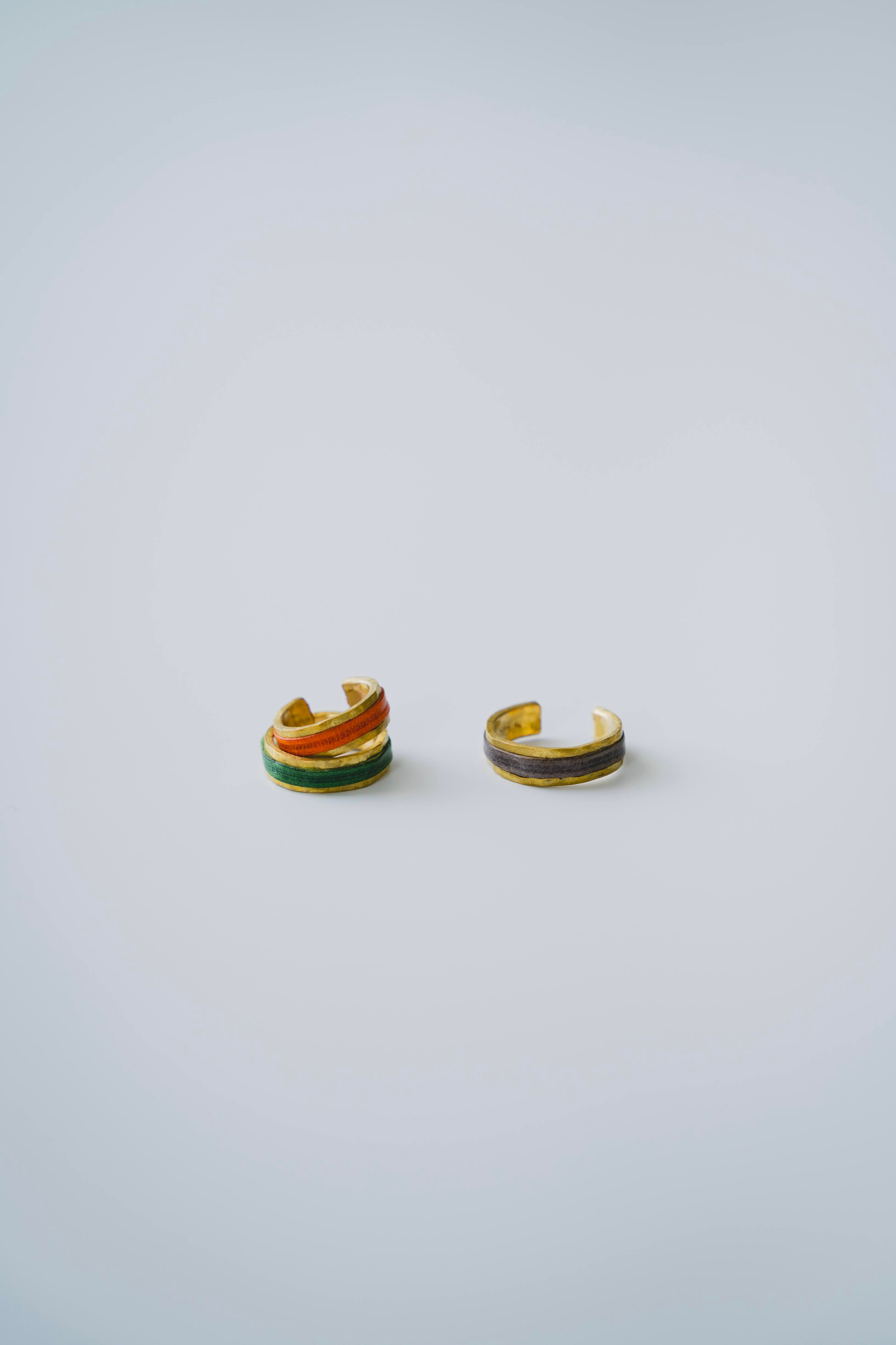真鍮の落ち着いた表情に、色の重なりがほんの少しだけ彩りを添えるリングです。