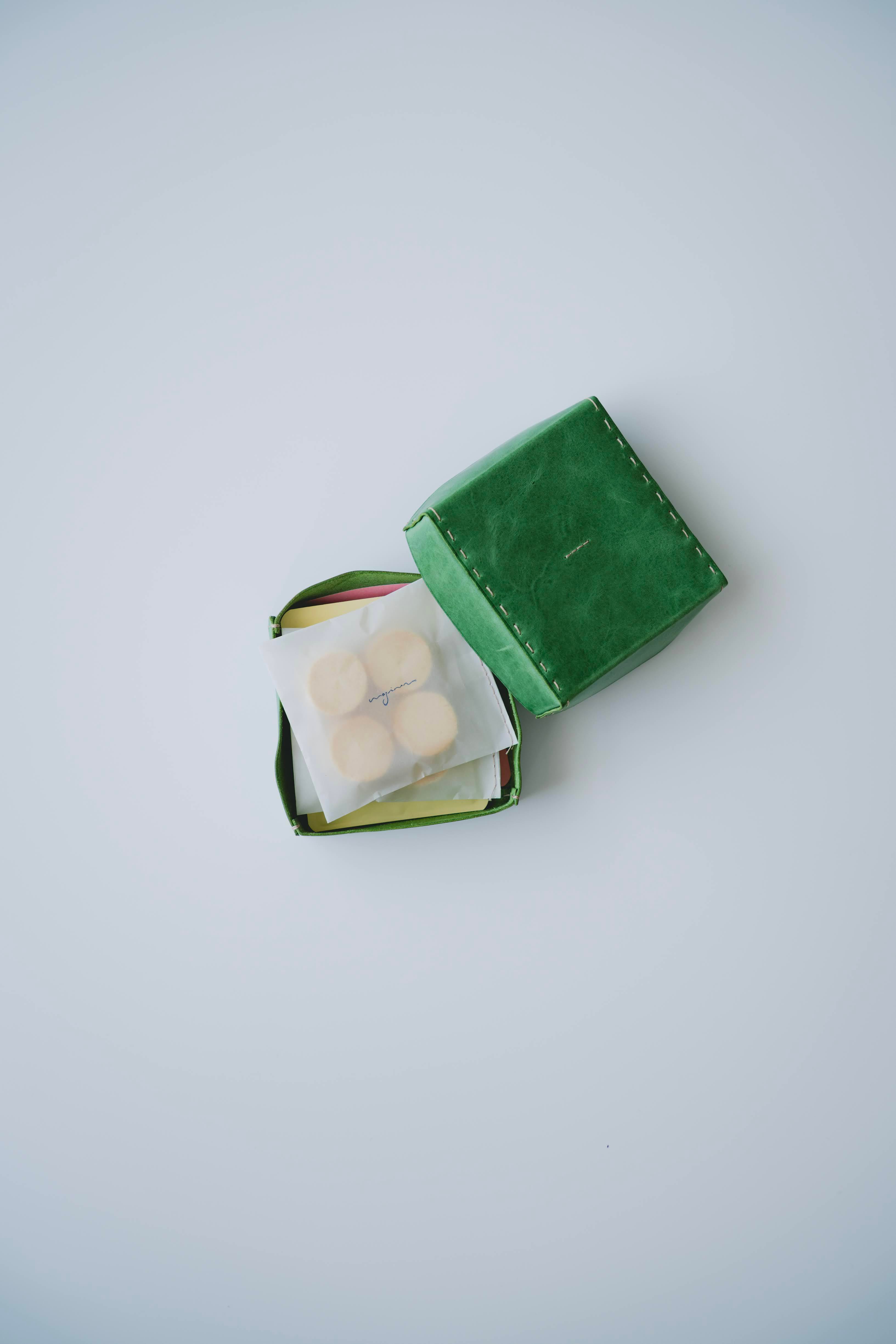 革職人が一針ずつ並縫いで仕立てた、やさしい正方形の小箱。